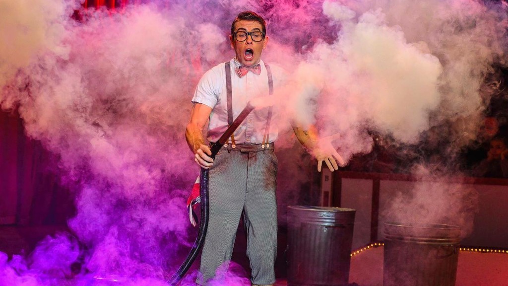À l’heure du Brexit, ce talentueux auguste se trouve en équilibre entre ses origines françaises par son père et anglaises par sa mère. Mais son terrain de jeux n’a pas de frontières, car Émilion a trouvé parmi les passe-temps et les centres d’intérêt des jeunes générations tout ce qu’il faut pour renouveler l’art clownesque. Ne vous étonnez pas de le voir chercher des « Pokemon » dans les gradins ou de faire des selfies avec un portable géant. Admirateur de JerryLewis, il a adapté le sketch de la machine à écrire que Jerry Lewis créa pour le film « Un Chef de Rayon Explosif » en 1953. Et ce n’est qu’une partie de son répertoire !